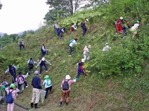 行政が主体性を持ちながら、町民のボランティア活動により実施しており、運動を通して、森林環境保全と地球環境について考える良い機会として継続しようとするものです。